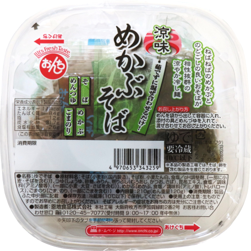 ゆでそば、つゆ、めかぶ、ごまのり |